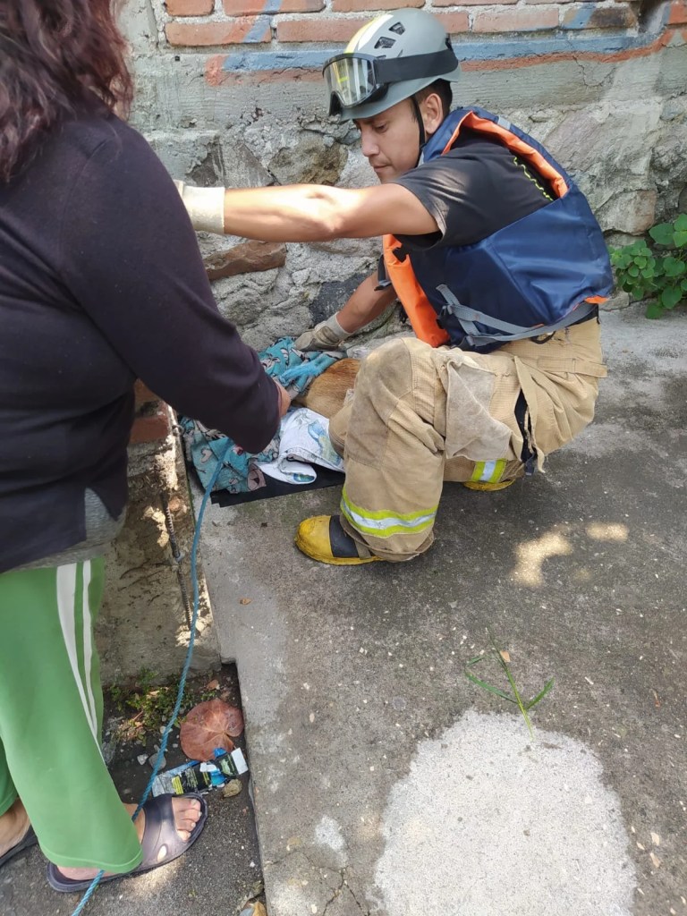 Esta mañana, elementos del cuerpo de bomberos fueron llamados para ayudar en el rescate de un perro que cayó a una barranca en la colonia Paraiso del municipio de Cuautla.